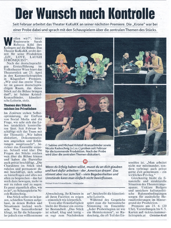 Mit: Mathias Krispin Bucher, Michael Kristof-Kranzelbinder, Sabine Kristof-Kranzelbinder, Nicole Radeschnig
